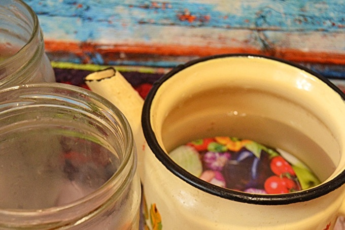 لا تنسى عن الأغطية والبنوك. غطي الغطاء في إبريق شاي بالماء لتعقيمها بالغليان.
