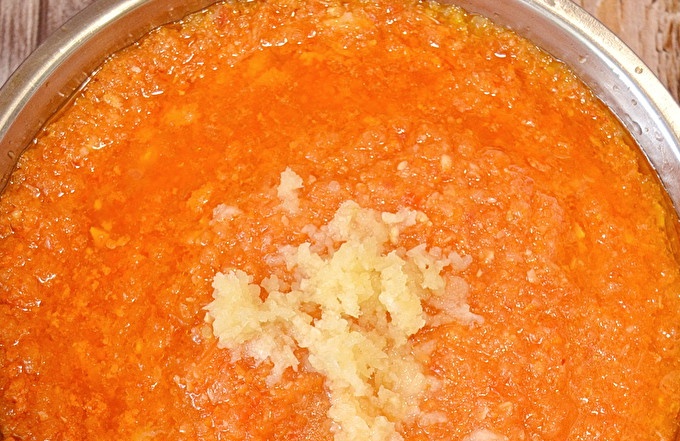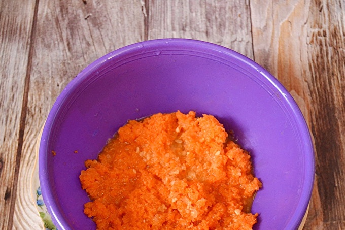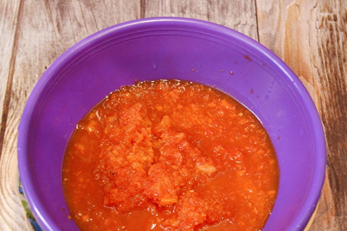 وخلال هذا الوقت سنقوم بمعالجة المكونات الأخرى من adzhika في المستقبل. تخطي الجزرة من خلال مفرمة اللحم.