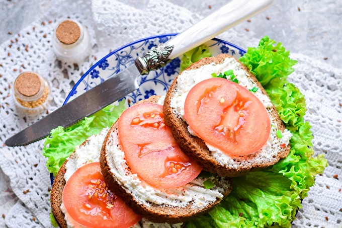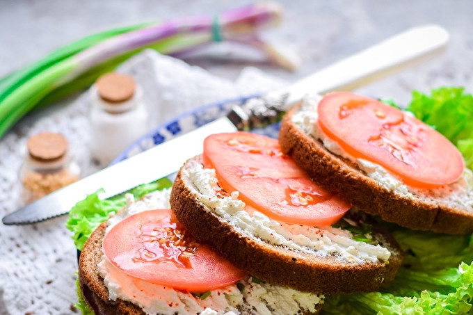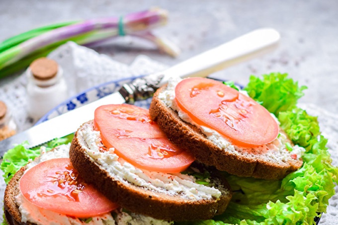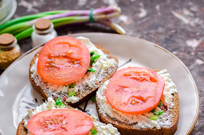 اليوم سوف نقوم بصنع شطائر لذيذة مع الجبن الطماطم والطماطم (البندورة) معك - ستكون لذيذة للغاية وغير عادية ومغذية. بمساعدة وصفة خطوة بخطوة ، ستكون العملية سهلة وبسيطة. كأساس في هذا الإصدار من السندويشات ، من الأفضل استخدام الخبز الرمادي أو الأسود ، إنه ممتاز إذا كان الخبز مع إضافات الكمون والكزبرة والتوابل والتوابل المختلفة. الجبن الرائب يمكن أن تستخدم أي ما تريد.