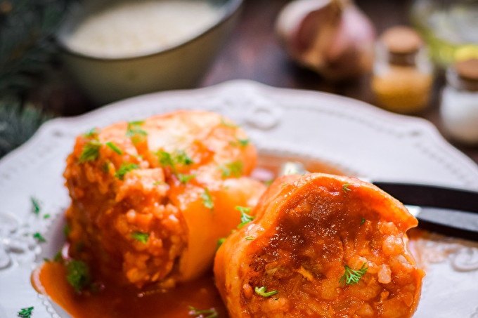 الفلفل المحشو باللحم والأرز هو طبق لذيذ عرفناه لفترة طويلة. كل مضيفة لديها أسرار خاصة حتى لو كان هذا الطبق البسيط مثل هذا. شخص ما يفضل أن ينضج الفلفل في قدر ، ويحب شخص ما النتيجة في الفرن أكثر ، ويحب شخص أن يخنة الفلفل في صلصة الكريما الحامضة ، أو شخص ما في صلصة الطماطم ، إلخ.
