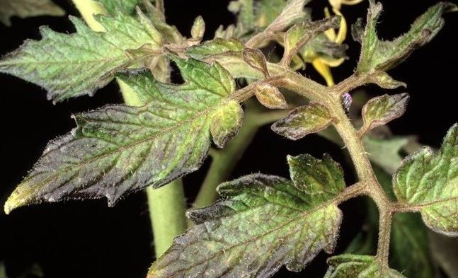 - الأوراق السفلية مغطاة بالبقع الداكنة.