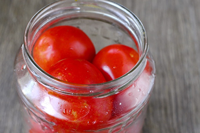 الآن صب الماء المغلي في الجرار لتغطية الطماطم وترك لمدة نصف ساعة.