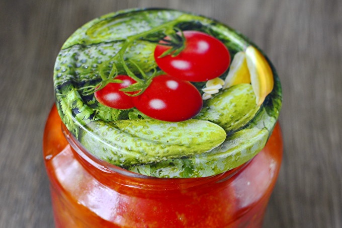 يُغلى المزيج جيدًا ثم يُمزج جيدًا ، ويُسكب الطماطم مع ماء مالح ساخن ورائع. نحن نشمر العلب بأغطية ، ونتركها مقلوبة ومغطاة ، وعندما تصبح باردة ، نقوم بإزالتها إلى الطابق السفلي أو المخزن.