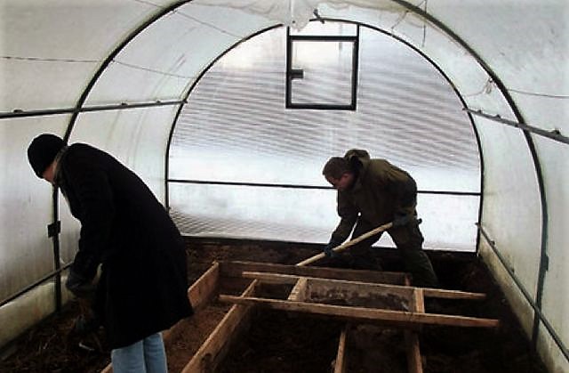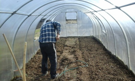 في هذه الحالة ، بعد تنظيف المنطقة ، تتم معالجة الدفيئة بمحلول 1٪ من البوتريول الأزرق ويفتح للتجميد خلال فصل الشتاء. في الربيع مستوردة خليط التربة.