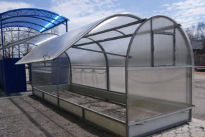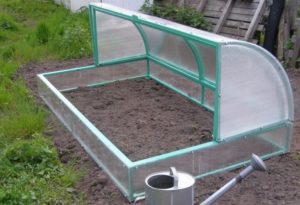| الأرض أو "الفرنسية" | هرمي وشكل ممدود قليلا يضمن توزيع موحد لأشعة الشمس. يتم توفير ضبط الرطوبة والتهوية عن طريق اللوحات المنقولة. يتراوح حجم الدفيئة من 2 إلى 4 م ، والارتفاع - 1-1.3 م. |