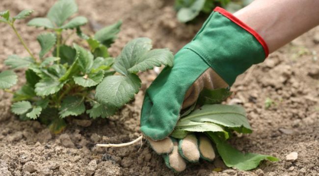 عندما تنضج الرؤوس تمامًا ، يتم حفرها باستخدام سكين زراعي (يزيلون الأعشاب الضارة) لتجنب تلف جذور الفراولة.