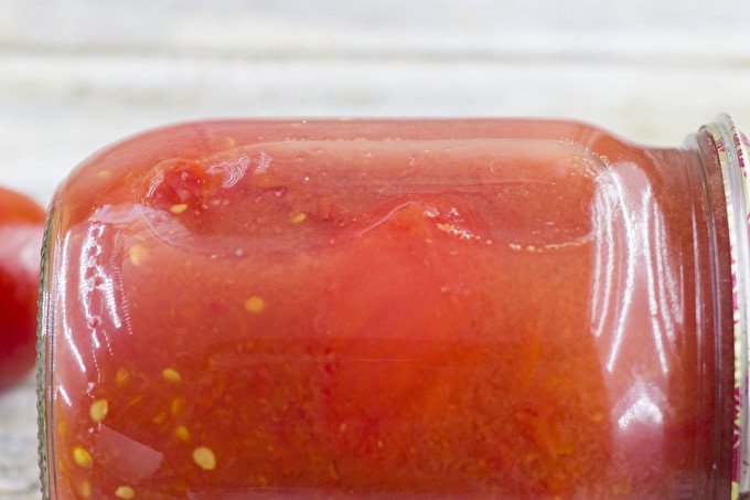الطماطم الحساسة دون قشر في عصير خاص بهم لفصل الشتاء