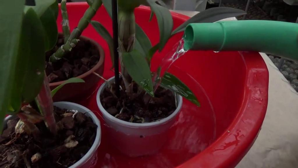 - يستخدم الغمر في بساتين الفاكهة النتوءية التي تنمو في سلة أو في حاوية بها ثقوب في القاع والجدران. زهرة لمدة نصف ساعة لوضعها في وعاء كبير مملوء بالماء الدافئ (25 درجة -35 درجة مئوية) - لا ينبغي أن تفيض فوق حافة السلة ، وبعد التشريب الكامل للتربة في الارتفاع فوق الرقبة. ثم ، ضع في المقلاة على الزجاج الزائد السائل. لا يمكن تطبيق هذه الطريقة أكثر من مرة واحدة في الأسبوع. إنها مناسبة ليس فقط للري ، ولكن أيضًا للملاحق ، عند إذابة الأسمدة في الماء.
