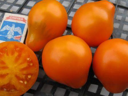 تجدر الإشارة إلى ، لا تخلط بين الطماطم "الكمأة الصفراء" مع البرتقال. هذا هو آخر متنوعة. لكن وزنها أكبر ، بدلاً من جميع الأنواع الأخرى - ما يصل إلى 200 جرام. هو واضح بقوة التضليع ، هذه الثمار عرضة للتشقق. ولكن يمكنك الحصول على ما يصل إلى 7-8 كجم من شجيرة واحدة. أيضًا ، من الأفضل عدم استخدام المنظر البرتقالي أكثر من شجرين للمتر. النباتات الناضجة في وقت مبكر.