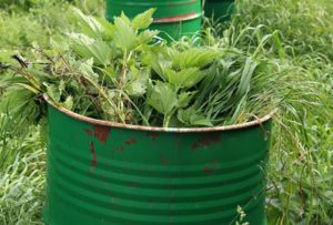 - السماد من السماد. يجب خلط رقائق الخشب مع السماد والعشب الطازج بنسبة 4: 1: 2. تمتلئ الكتلة الناتجة بالماء (3: 1) مع إضافة humates. يمكن إضافة فضلات الطعام (اللحوم والأسماك) إلى الخليط ، ولكن في حجم لا يزيد عن 1/10 من كتلة السماد العضوي. في 1 M2 تحتاج 25-30 كجم من الملابس أعلى.