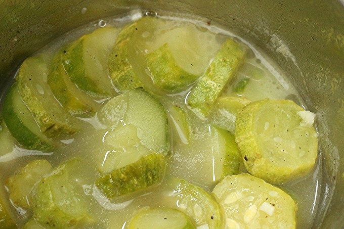 جنبا إلى جنب مع المخلل نحول الخيار إلى وعاء ، مرجل ذو قاع سميك. وضعنا على النار ضعيفة. اجلب الماء المالح ليغلي.