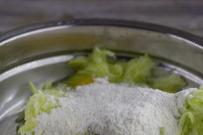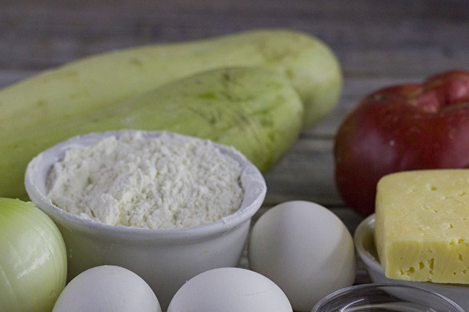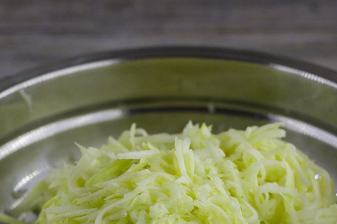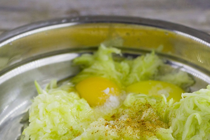بادئ ذي بدء ، غسل وتنظيف الكوسة من الجلد ، وفرك على مبشرة بأسنان كبيرة ، وترك في حاوية لمدة 30 دقيقة ؛ ضغط الاسكواش اللب. لا يمكن تقشير قشرة الكوسة الصغيرة: ستصبح ناعمة عند الخبز. لا تنسى أن تضغط على الكوسة تمامًا حتى لا تكون المعجنات مائيًا.