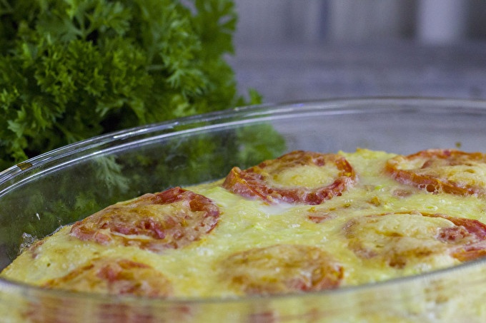 طاجن اسكواش بالجبن والطماطم جاهز للأكل. قبل التقديم ، يرش بالأعشاب المفرومة الطازجة ويقطع إلى قطع. يجب أن يتم احمرار المعجنات الجاهزة وتحويلها إلى ذهب كريما حامضة أو مايونيز كصلصة إلى فطيرة طاجن.